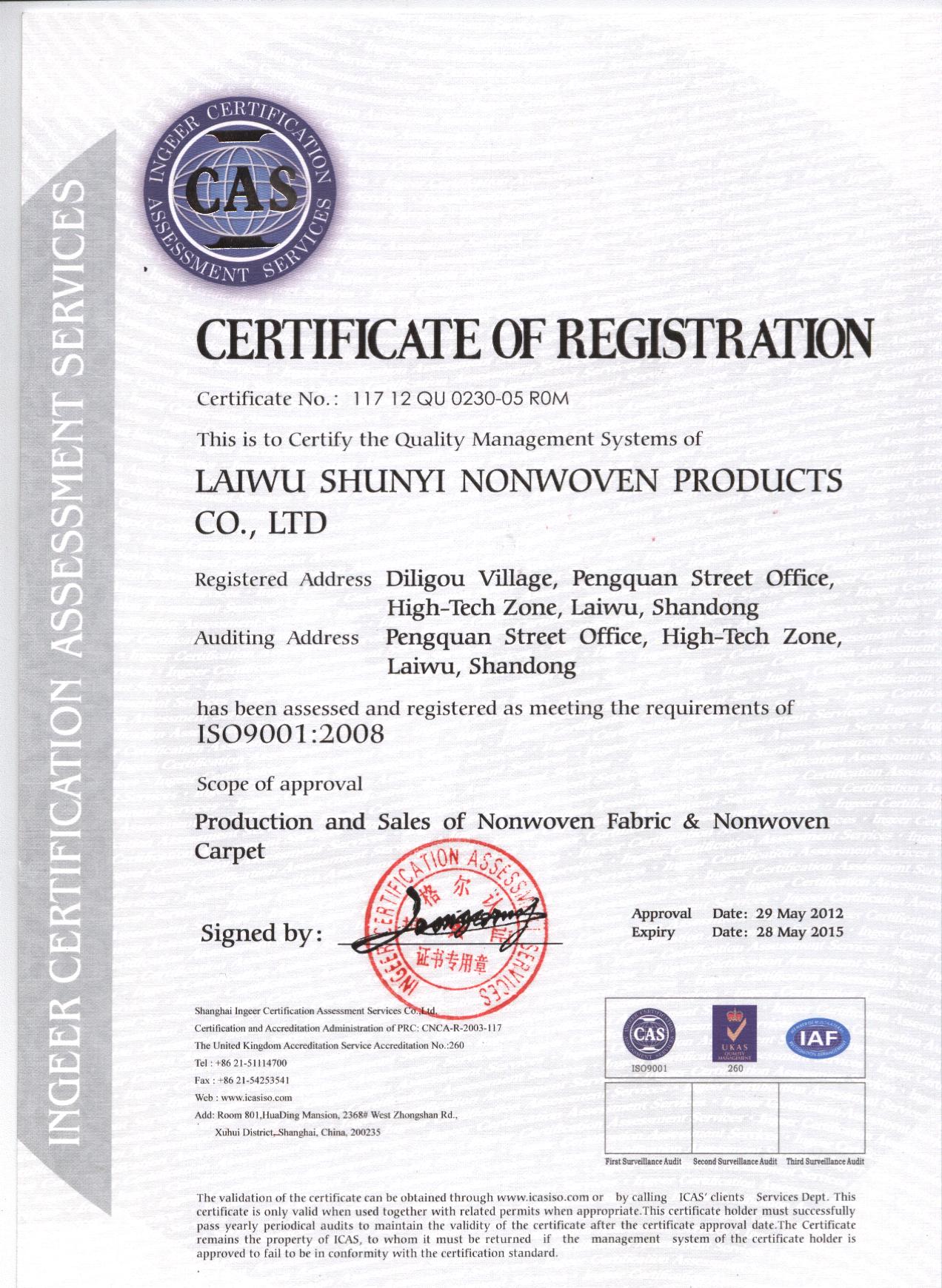 萊蕪順意無紡制品有限公司位于山東省萊蕪市高新區,地處京滬高速公路東出口,40分鐘車程可達濟南遙墻國際機場、2小時可達青島港。交通運輸便利。